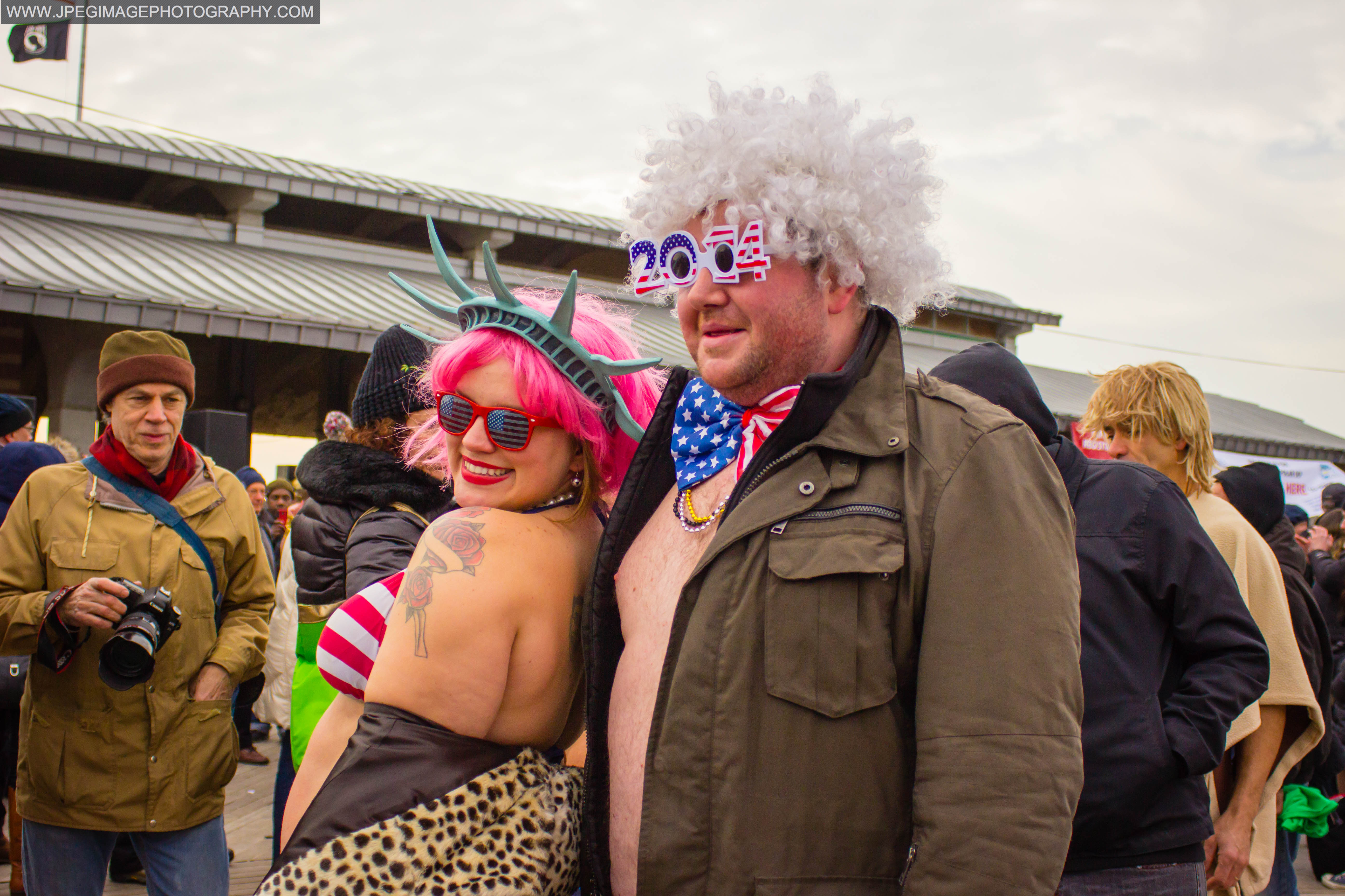 My two photography friends/associates that I usually travel with on photowalks, one of them came up with the idea of going out to Coney Island and seeing what the event was like. Needless to say that when we all got to Coney Island. That there was a massive crowed of people already there. Some preparing to go into the water, and others just there to watch the big event, it was like being at the beach during the summer time, but it was winter and cold.